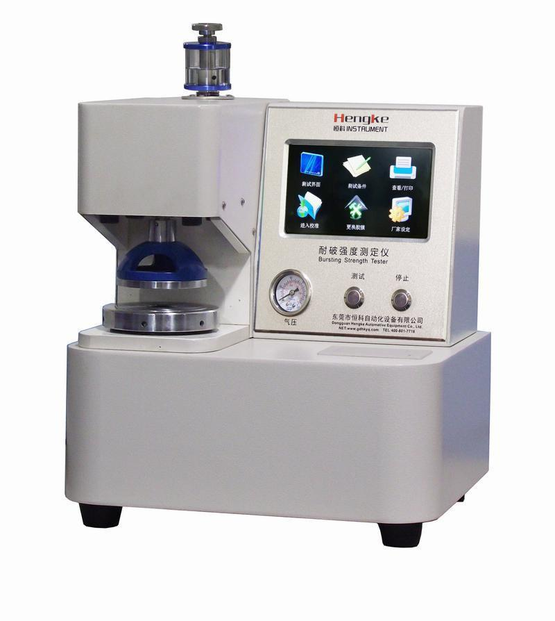 Mẫu được cố định chắc chắn trên cạnh của vùng tròn bằng thiết bị kẹp khí nén, sau đó bật máy thử và tăng dần áp suất với tốc độ (95 ± 5 ml / phút ) . Khi chất lỏng thủy lực được bơm vào với tốc độ ổn định, mẫu là Màng keo phồng lên tự do với nhau, cho đến khi mẫu bị vỡ, giá trị lớn nhất của áp suất thủy lực tác dụng là giá trị độ bền đứt của mẫu thử.